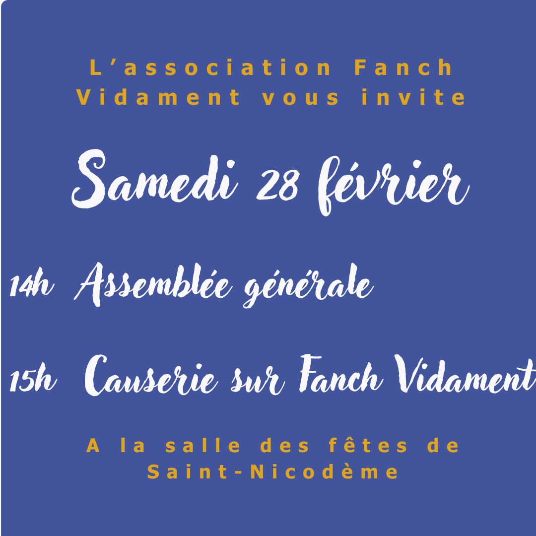 - Le temps de causerie sera précédé de l’Assemblée Générale de l’association Fanch Vidament peintre paysan, ouverte à tous.tes, à 14h.